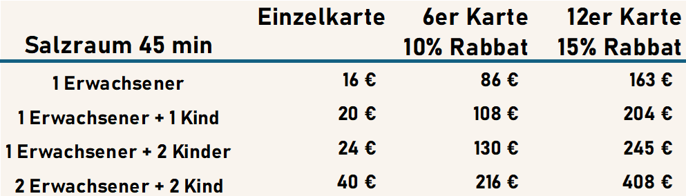 Bei Fieber oder Unwohlsein bleibt bitte lieber zuhause – die Salzluft kann den Körper zusätzlich belasten.
