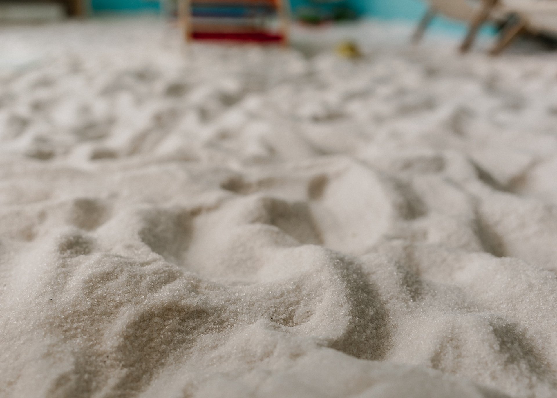 Der Boden ist mit feinem Bio-Salz bedeckt und erinnert an einen hellen, freundlichen Strand.
