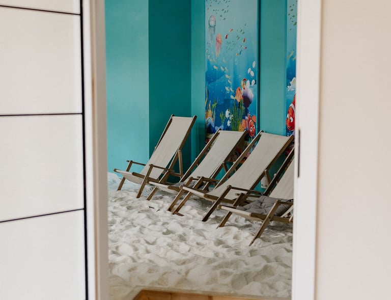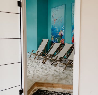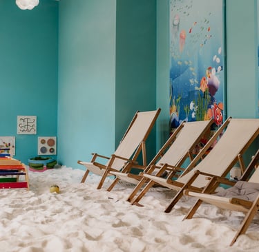 Im Mittelpunkt steht unser Salzraum, das Herzstück von Babybeach: ein liebevoll gestalteter Raum, der an einen kleinen Strand am Meer erinnert.