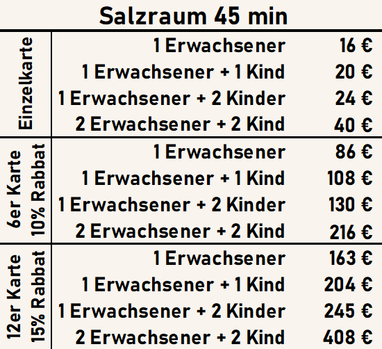 Bei Fieber oder Unwohlsein bleibt bitte lieber zuhause – die Salzluft kann den Körper zusätzlich belasten.